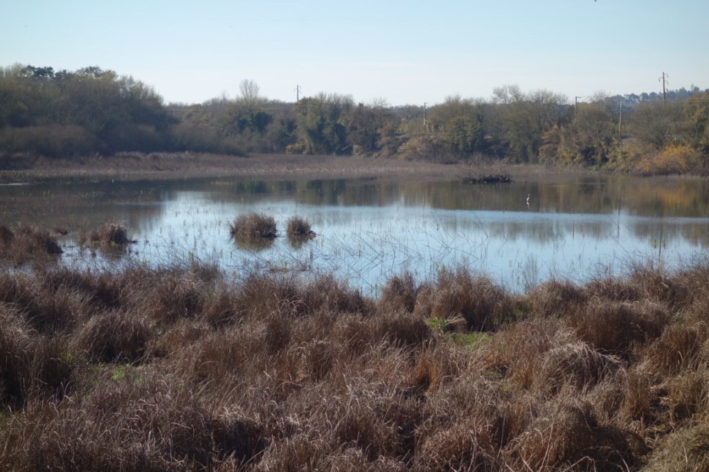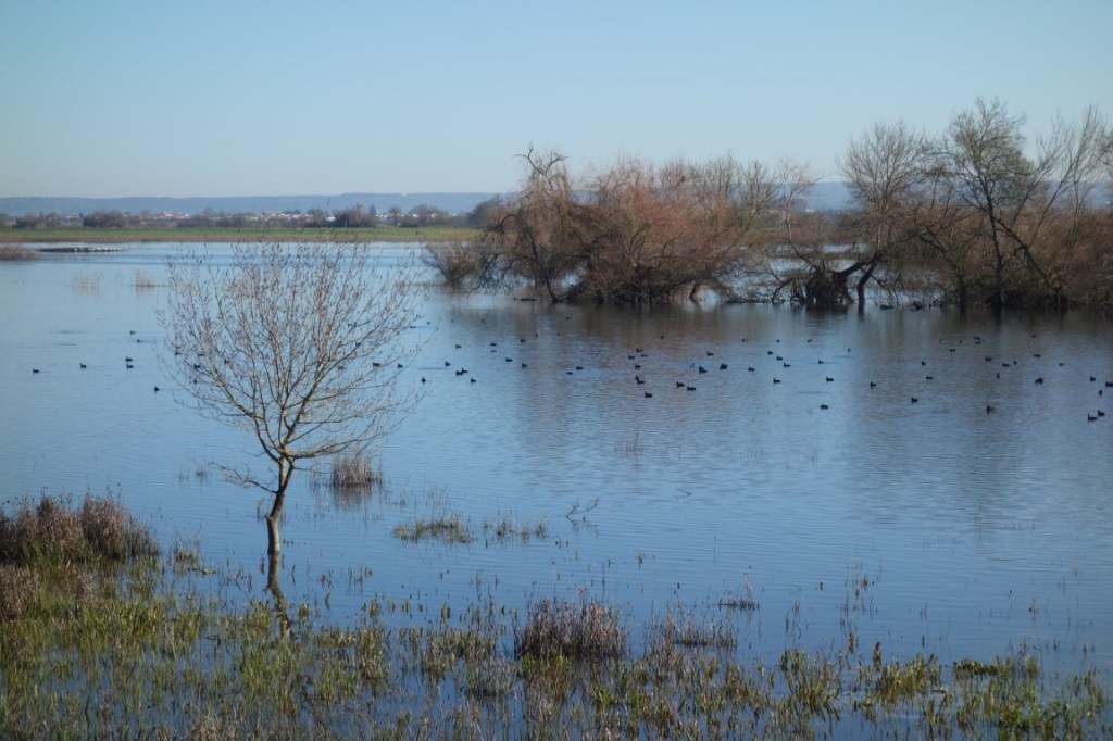 Na primeira visita à Reserva Natural do Paul do Boquilobo, visitámos o seu pequeno centro de interpretação, com uma exposição sobre a área, e vimos anilhar um guarda-rios. Nesta segunda visita levámos os binóculos para melhor poder descobrir e admirar as várias espécies que aqui costumam marcar presença. Assim, desde o posto de observação mais perto do centro, conseguimos ver um conjunto de garças ao fundo, diversos corvos em cima das árvores, uma ave de pernas rosa na base de uma árvore e muitos patos pretos na água a mergulhar. Estão registadas 238 espécies já observadas na reserva, algumas raras ou ocasionais, as quais representam 44% das espécies registadas em Portugal e 31% das registadas na Europa, numa área de apenas 0,009% do território nacional. É um lugar privilegiado de invernada de patos, entre eles o pato real, bem como galeirão, galinha de água, mergulhão pequeno e diversas garças. Está ainda registada a presença de 28 espécies de mamíferos, como a lontra, texugo, gineta, toirão, raposa, doninha e javali. Anfíbios são 18, entre os quais a salamandra, e répteis 11, como a cobra de água, cágados, osga e lagartixa do mato. Há ainda o registo de diversidade de peixes e invertebrados, uma indicação da qualidade da água e da saúde do ecossistema, e entre as 17 espécies encontram-se a boga e o ruivaco. E não faltam invertebrados como borboletas, pirilampos e cigarras. Na flora e vegetação, para além dos já referidos salgueirais e caniço nas zonas mais alagadas, há também freixos, choupos e roseiras bravas na mata ribeirinha e nas zonas menos inundadas e sobreiros, pinheiros mansos, carvalhos e muita aroeira nas encostas secas, num total de 308 espécies de plantas.