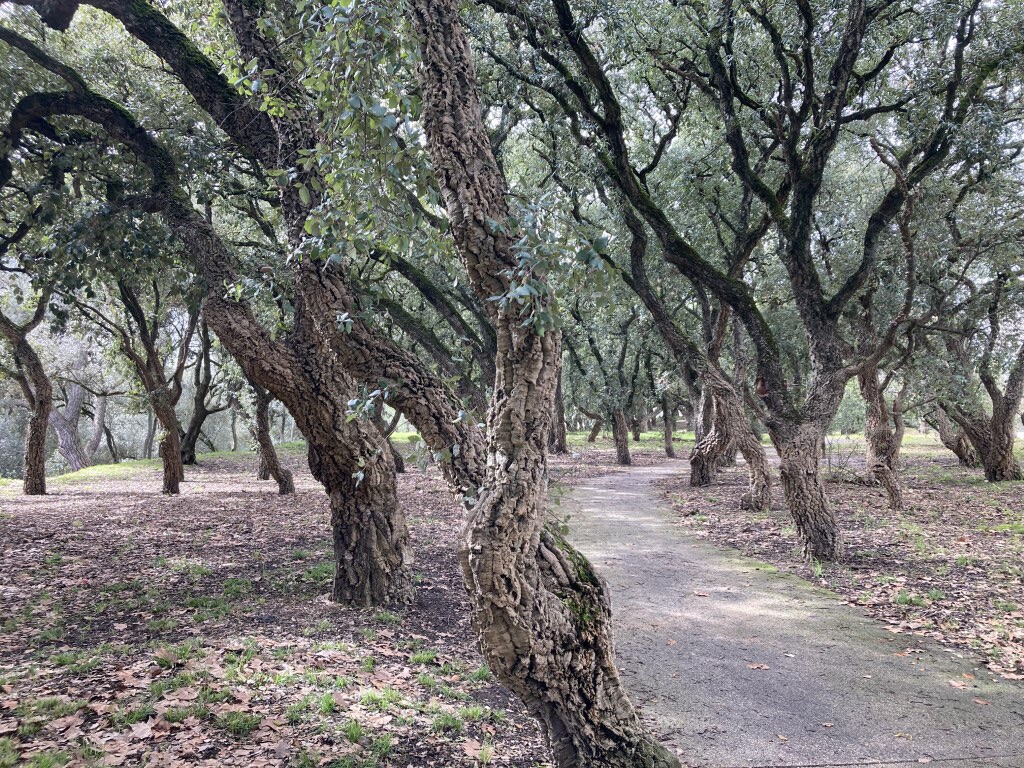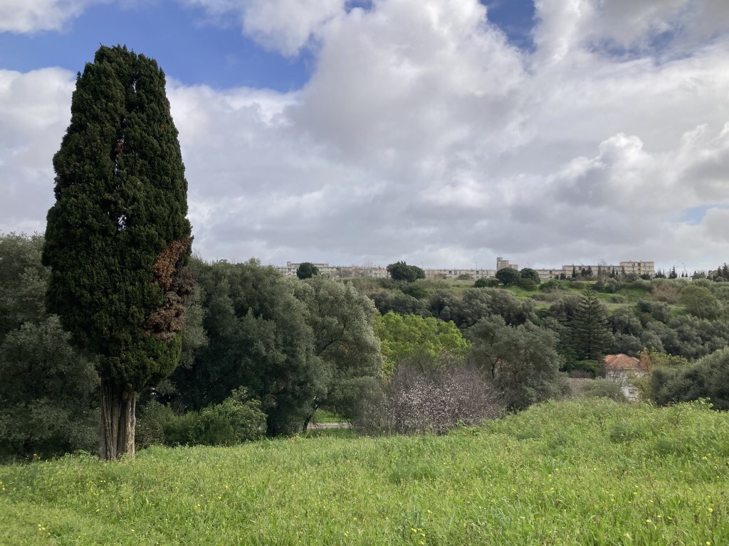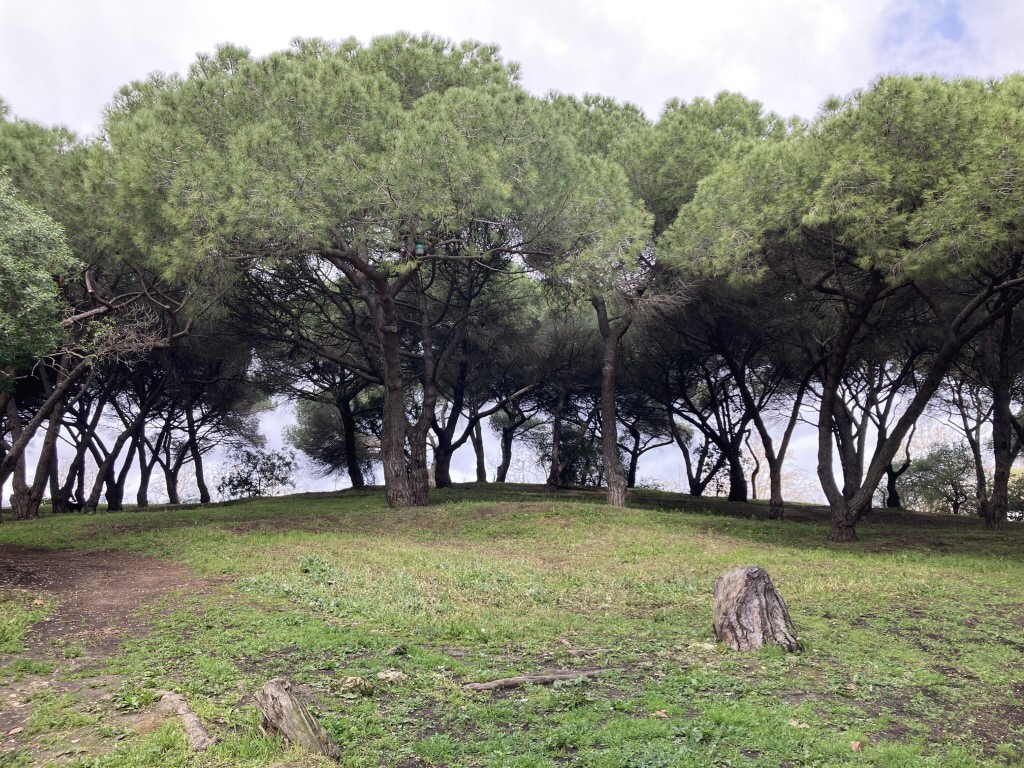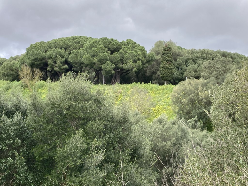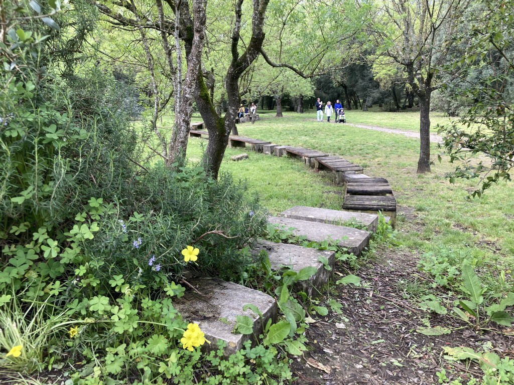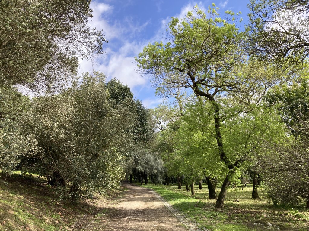 Esta clareira, parte central do parque, faz a ligação entre o olival e o feixial, estando igualmente presentes outras árvores de grande porte, como cedros, pinheiros-mansos e sobreiros.