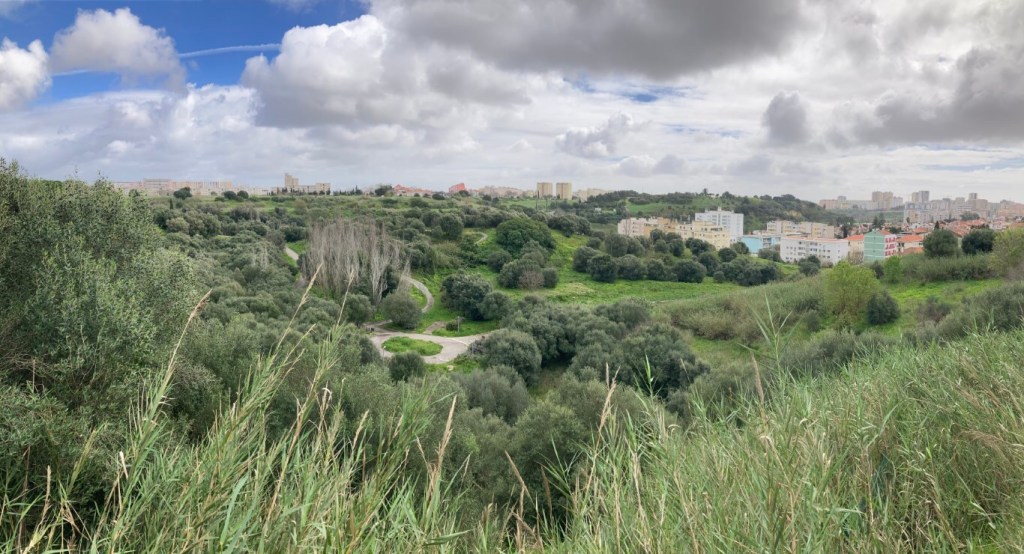 A densidade desta vegetação impressiona ainda mais quando vista desde os miradouros do parque que toma o nome do escritor e poeta José Gomes Ferreira, que viveu entre 1900 e 1985. É uma mancha que parece não ter fim, deixando ver os prédios do Areeiro ao fundo e quase se colando com a mancha do parque do outro lado da Avenida Almirante Gago Coutinho (Avenida do Aeroporto), o Parque da Belavista.