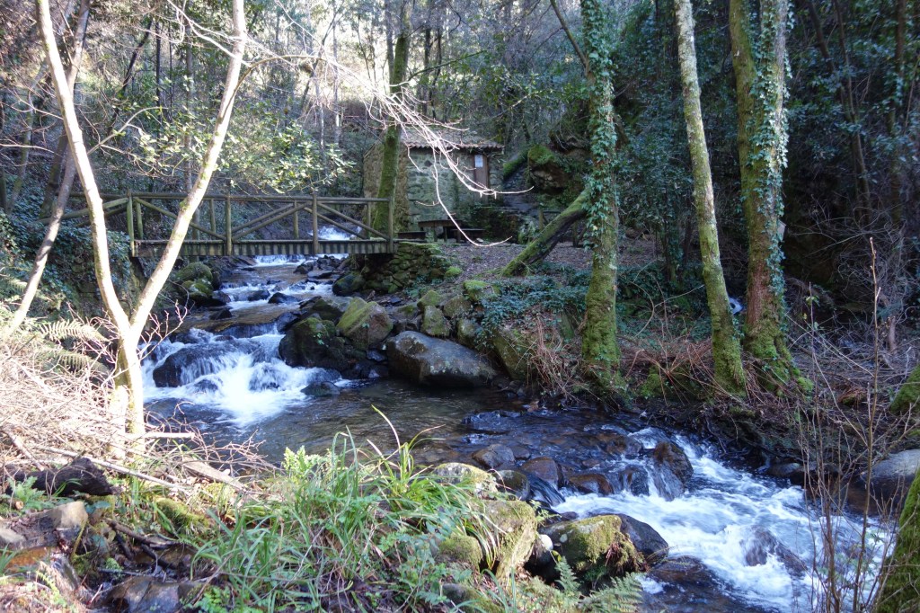 Mas é o verde e as suas diversas tonalidades que tomam conta do lugar, deixando um espaço estreito para a água da ribeira atravessar. O bosque de loureiros, amieiros, salgueiros e ulmeiros dá ares do interior das ilhas da Madeira ou dos Açores. Mas há também várias espécies de carvalhos e fetos, uma festa de diversidade vegetal. O sol quase não entra e, por isso, a humidade é constante, tornando as pedras que pisamos escorregadias – daí a dificuldade e até a eventual perigosidade do trilho.