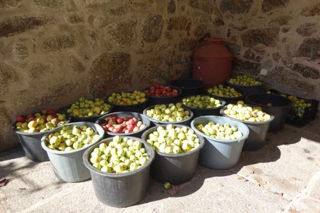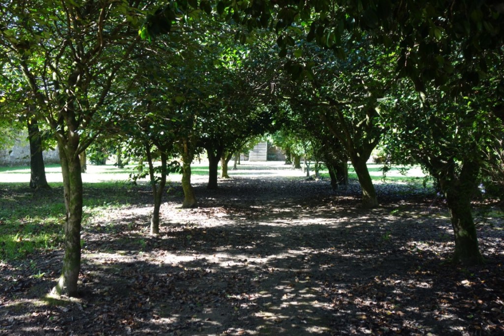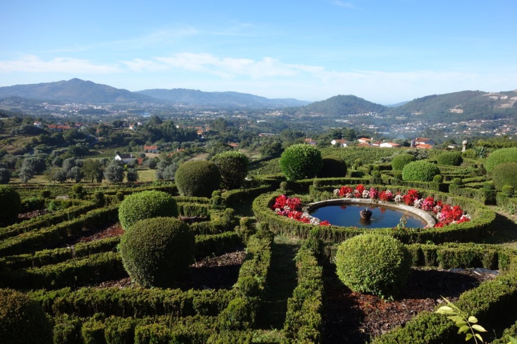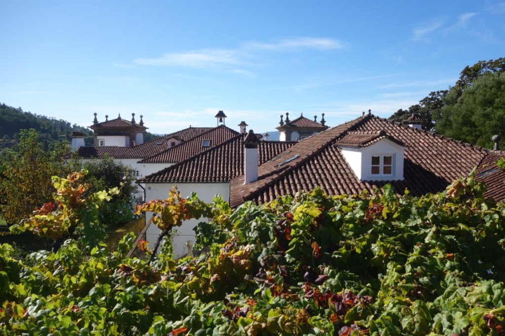 Os jardins são outra presença forte no Paço de Calheiros. Há o jardim barroco formal, de buxo e em socalcos, proporcionando as tais panorâmicas fantásticas sobre o Lima e seu vale. E, para que não restem dúvidas ser esta uma propriedade agrícola, para além de árvores de fruto, as vinhas envolvem fortemente a propriedade. Na altura da nossa visita, decorriam as vindimas, pelo que tivemos direito a conhecer também a adega, percebendo o papel do Paço na produção de vinho próprio.