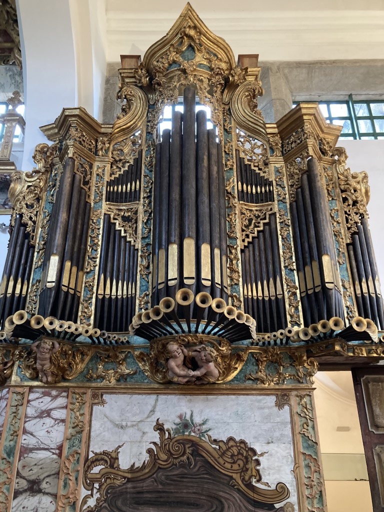 No entanto, é o magnífico órgão que rouba todas as atenções. Obra do século 18, é um exemplar lindíssimo. Nunca havíamos estado tão perto de um órgão destes e, graças à atenção e simpatia do segurança transformado em guia, pudemos perceber os seus detalhes, nomeadamente como funcionam as peças que permitem a emissão do som e, sorte maior, tivemos direito a um mini concerto. O som que emana do órgão é, efectivamente, tocante.