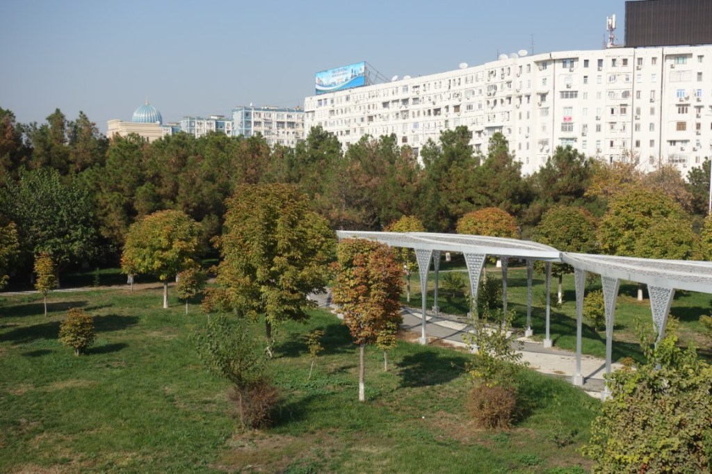 Na envolvente deste complexo, uma generosa área verde acolhe diversas árvores, algumas exóticas, e flores. Aliás, parques e jardins não parecem faltar a Tashkent. Percebe-se que houve aqui planeamento urbanístico, ainda em desenvolvimento, mas a sua enorme escala não é amiga do turista, muito menos daqueles que não se dispõem a dar-lhe tempo para a conhecer, o nosso caso. Vale que o metro nos permite ligar os pontos. Para mais, o metro de Tashkent (bilhete a 14 cêntimos! em 2024) é ele próprio uma visita imperdível, designadamente algumas das suas estações, verdadeiras obras de arte desenhadas por artistas e arquitectos locais e decoradas com motivos e temas caros à sua cultura. O primeiro sistema de metropolitano da Ásia Central, até há poucos anos não poderíamos fotografar as suas estações, mas hoje podemos não só admirá-las como trazer connosco auxiliares de memória. Todas as estações serão dignas de visita, mas tocou-nos conhecer as seguintes: