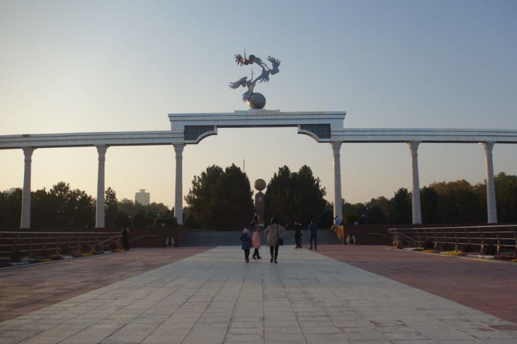 A Praça da Independência (Mustakillik) já foi Praça Lenine e teve uma estátua sua no meio, mas desde a independência do Usbequistão mudou de nome, a estátua foi retirada e colocado um monumento em forma de globo com as fronteiras do país e requalificado o espaço, criando-se mais zonas verdes e fontes. Todavia, toda a zona estava com acesso vedado, talvez por aqui estarem situados uma série de edifícios e serviços governamentais e houvesse algum evento especial, limitando-nos a conhecer o grande arco dedicado à paz, uma espécie de ponte suportada por uma série de colunas.