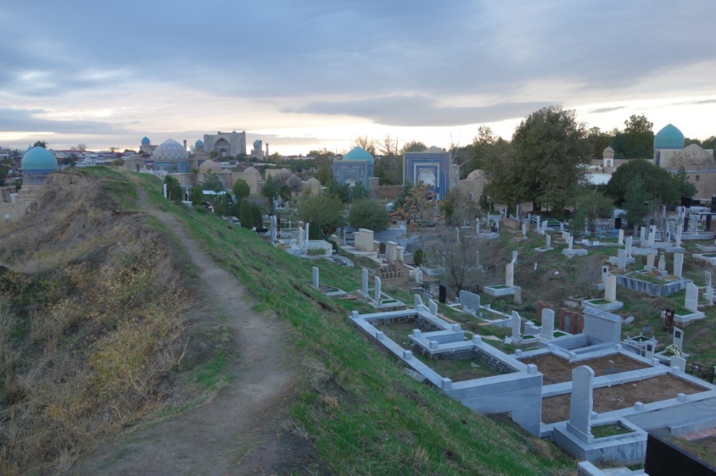 Ao lado da necrópole Shah-i-Zinda está o principal cemitério de Samarcanda, donde nos despedimos com mais uma grande panorâmica da cidade.