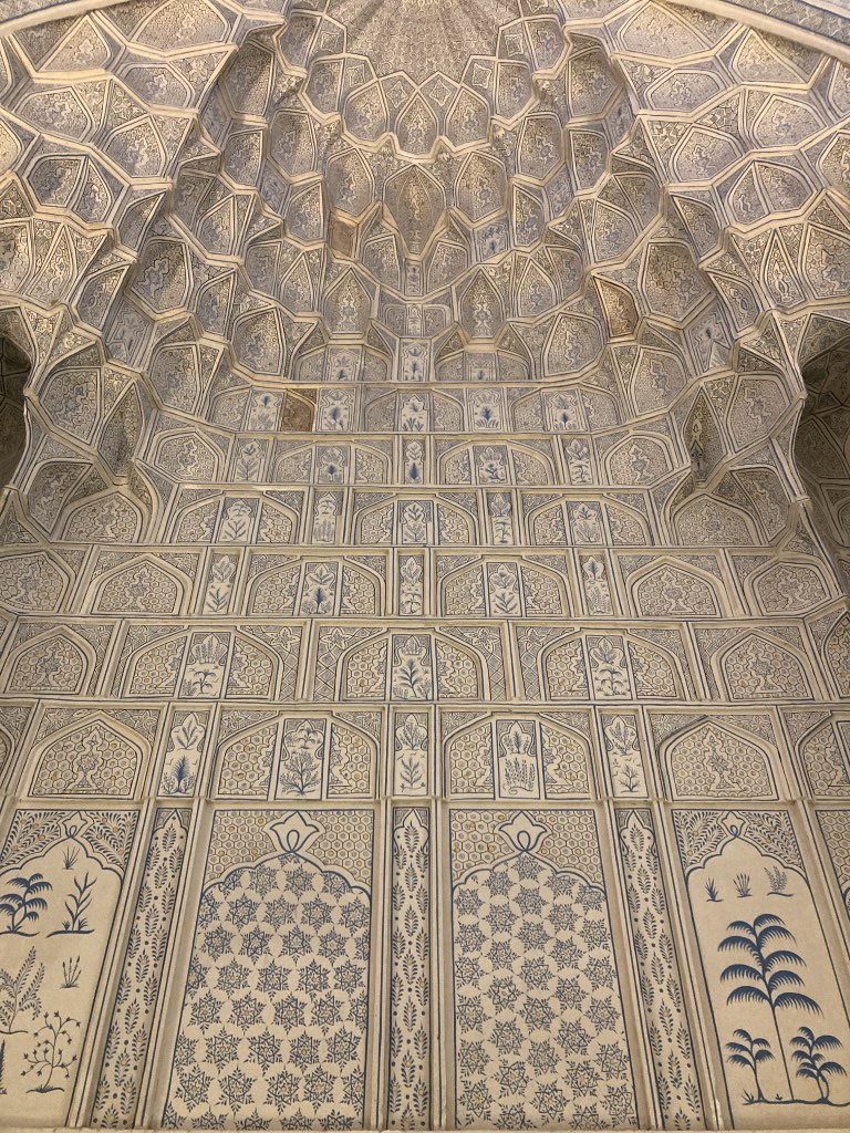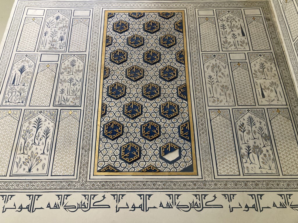 No entanto, a decoração do interior da sala rouba todas as atenções, sendo de um deslumbre imenso. Com as paredes e a cúpula revestidas por completo de mosaicos em tons de azul claro e, sobretudo, dourados, a iluminação que enche o lugar é de uma harmonia sem par, fazendo-nos sentir sob um céu estrelado.