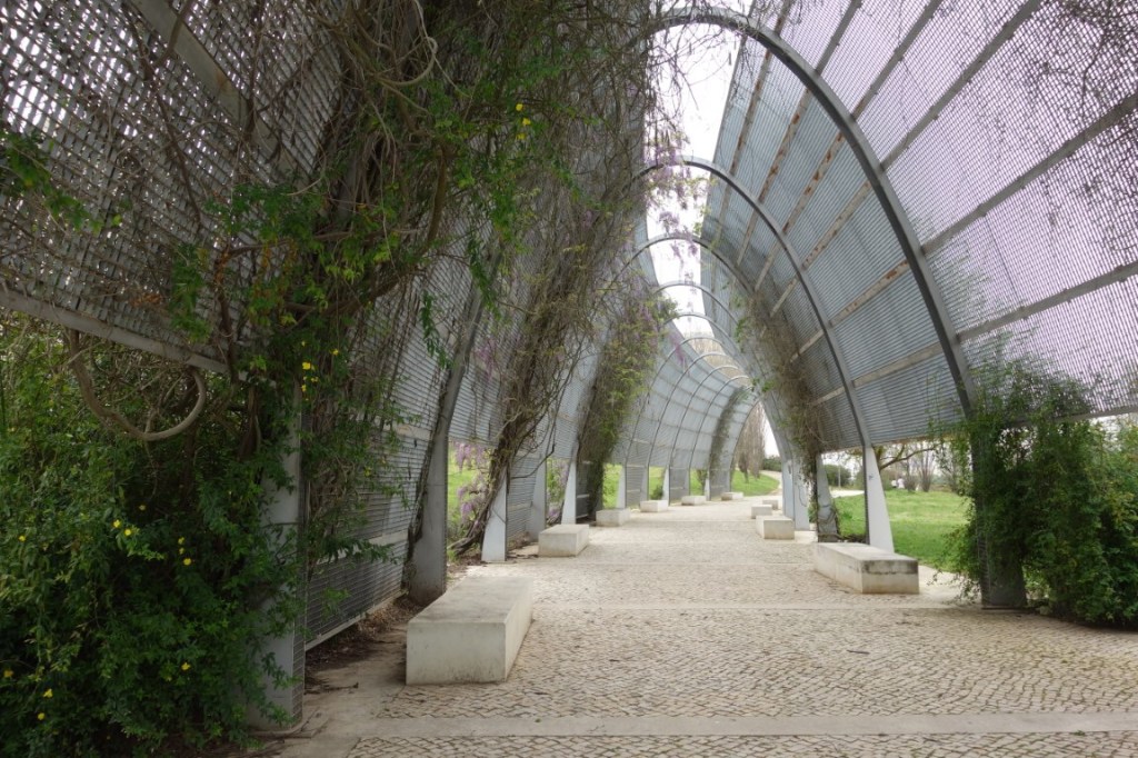 Mas a pérgola metálica que serve de passagem e sombra, com plantas a envolver a sua estrutura, é outro elemento de destaque.