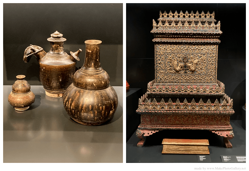 E são peças bem bonitas, como uma estátua de Buda a caminhar (da escola de Sukhotai, do século XIV), um biombo namban (dividido em 6 partes, com a representação da cidade de Edo / Tóquio), uma máscara noh (teatro japonês), um cavalo em terracota da China (e outros animais), um pagode chinês, várias estatuetas da Índia, pinturas e outros objectos de arte mogol, um conjunto de chá e têxteis da Tailândia, diversas cerâmicas, caixas de laca e jóias. Até um pé de um Buda de meia tonelada. Gostei. Para todos aqueles que não podem viajar até à Ásia ou visitar um dos museus dedicados à arte oriental nas maiores cidades europeias, este é um museu imperdível.