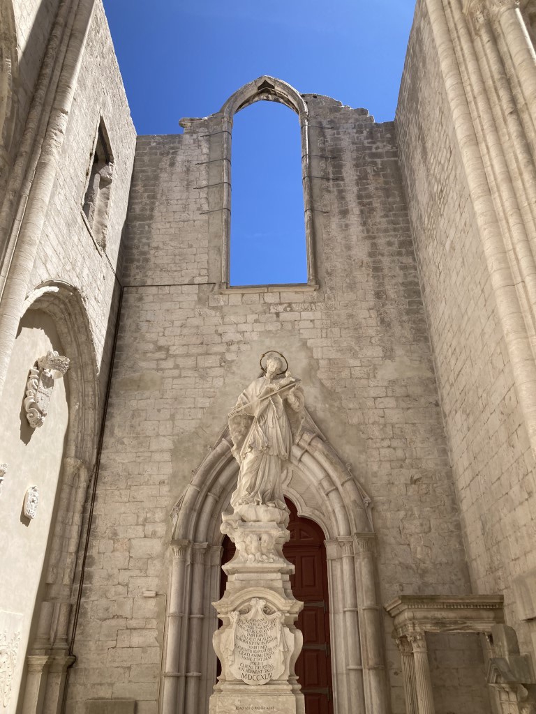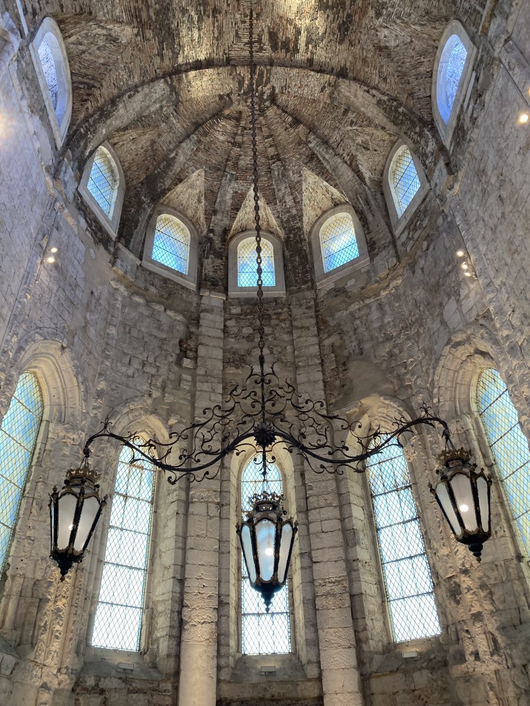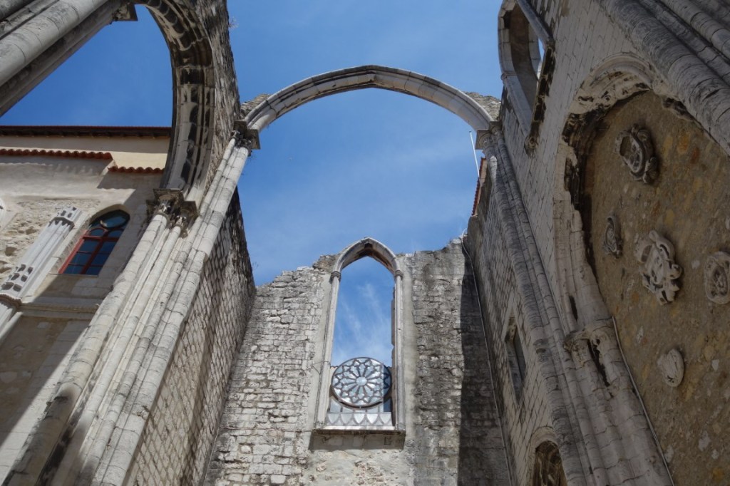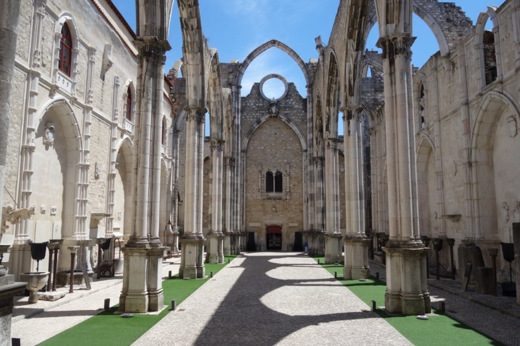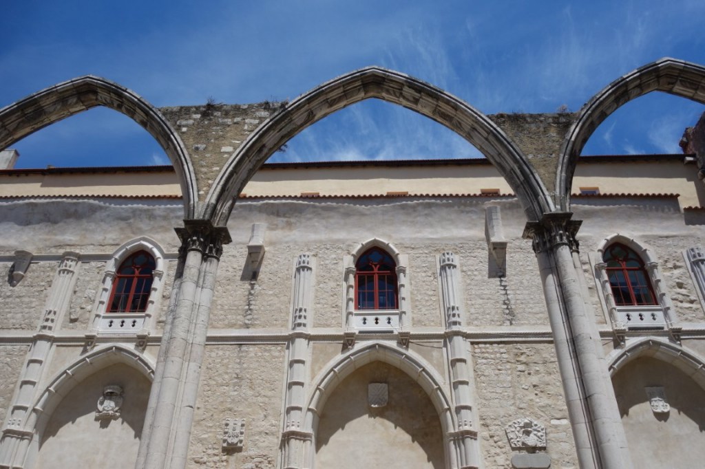 E, assim, a ruína da Igreja do Convento do Carmo confunde-se com o Museu Arqueológico do Carmo. Deambulamos pelas três naves da igreja, ladeadas por arquivoltas onde se escondiam as capelas laterais, e sob o que resta do transepto arruinado – um ambiente deveras incrível – e vamos conhecendo e apreciando inúmeras peças que nos ajudam a entender que o património é uma construção e que, ao refazer o tempo, nos dá igualmente uma consciência desse mesmo tempo / história.
