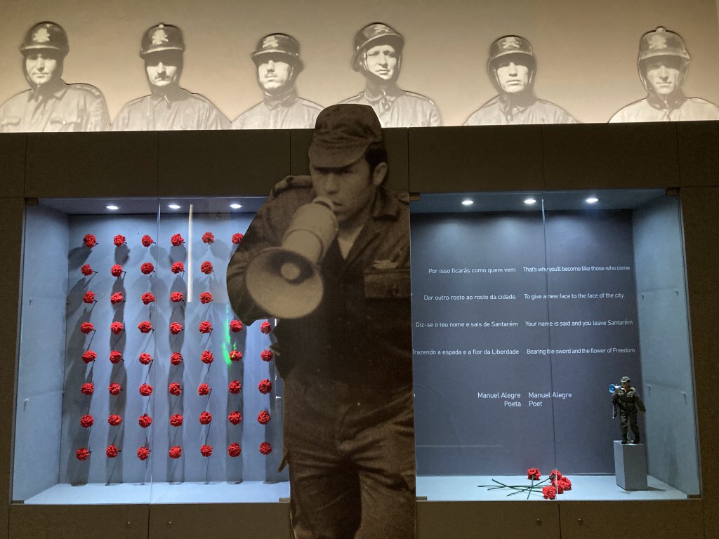 Não surpreende, pois, que a imagem deste Capitão de Abril nos receba à entrada, bem como a imagem de uma espingarda com cravos. São momentos que ainda hoje, volvidos 50 anos de liberdade e democracia, celebramos com emoção. O Museu dá-nos ainda um breve contexto histórico da fundação do Convento do Carmo (e mostra uma réplica da bandeira usada pelo Condestável na Batalha de Aljubarrota), assim como recria diversos ambientes militares, como um quarto de caserna de um posto da GNR e uma trincheira da II GGM, por entre variados objectos, desde botas a chapéus e até um motociclo.
