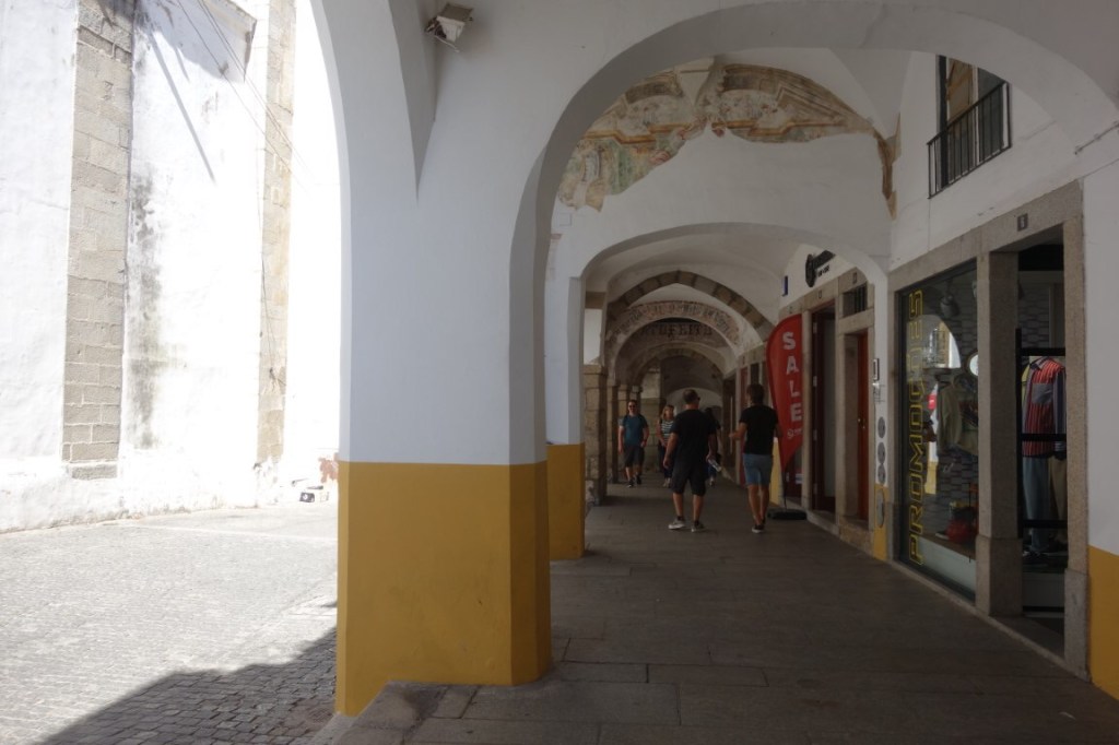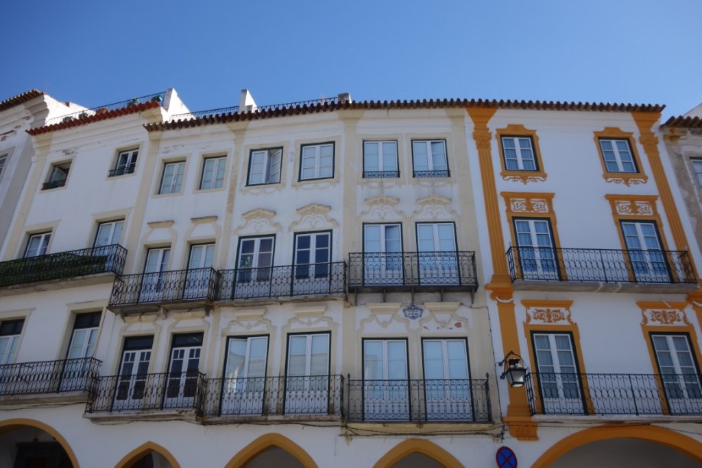 E não faltam, ainda, as portas e janelas de moldura manuelina, a maior parte delas vindas de edifícios demolidos no século 19, mas outras permanecendo nos edifícios de origem, de que é exemplo maior a da Casa Garcia de Resende que, diz-se, acolheu o cronista e poeta eborense Garcia de Resende.
