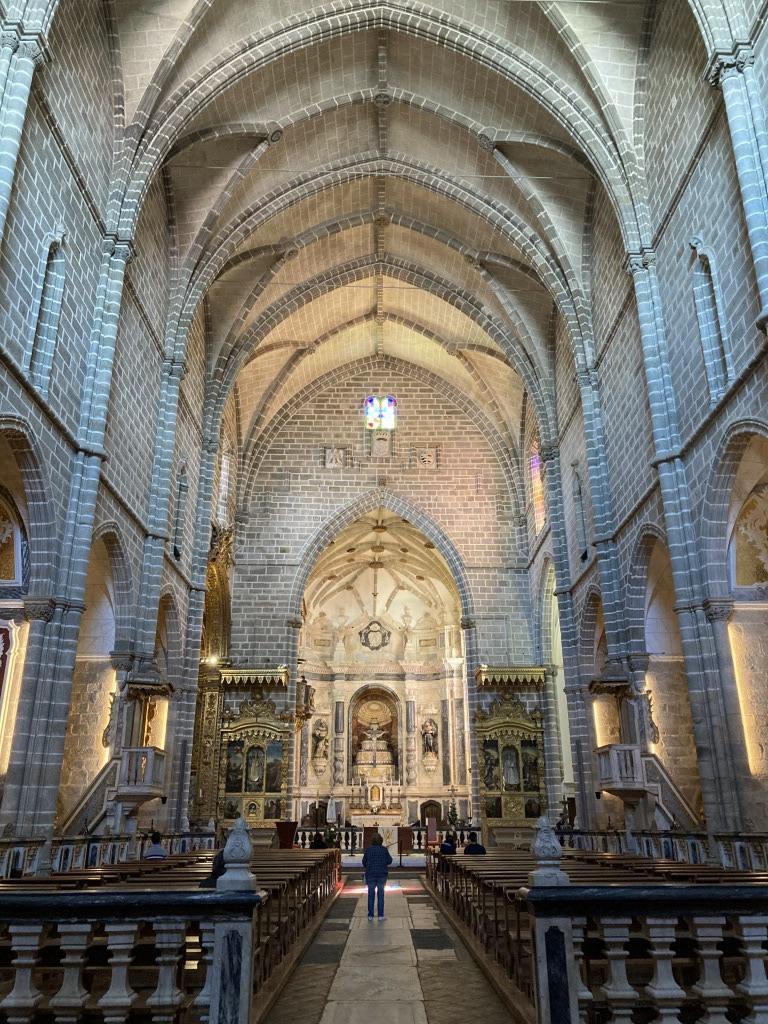 O Aqueduto da Água de Prata tem também um momento bonito na sua passagem pelo Convento de Santa Maria Scala Coeli, mais conhecido por Convento da Cartuxa, o primeiro desta ordem a ser fundado em Portugal, em 1587. Os últimos quatro monges cartuxos saíram apenas em 2019, transferidos para um mosteiro da ordem em Espanha. Após essa saída, o Convento, cuja quinta onde está instalado é propriedade da Fundação Eugénio de Almeida, permitiu visitas por um período, penitenciando-me até hoje não as ter aproveitado (diz que o seu claustro, com 100x100m, é o maior da Europa). Agora, e depois de em 2022 ter sido retomada a clausura do convento pelas monjas do instituto “Servidoras do Senhor e da Virgem de Matará”, apenas podemos visitar a sua igreja. Em estilo renascentista e plena de mármore, é bem acolhedora e bonita, mais um exemplo do poderio de Évora.