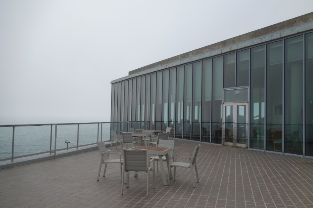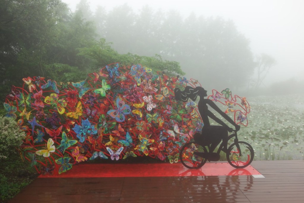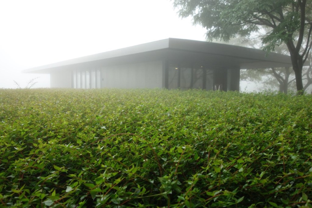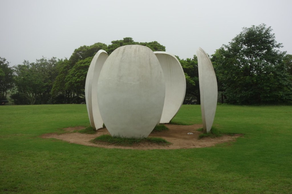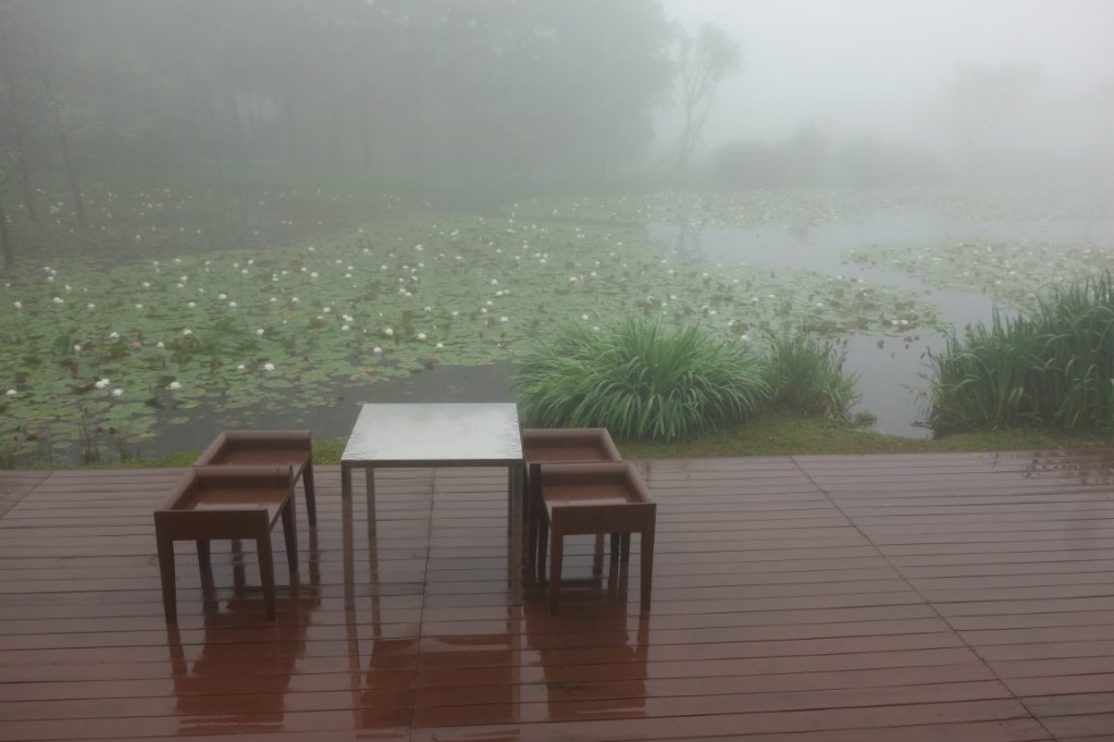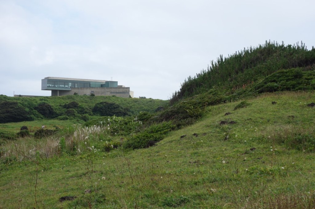 É provável de que da península onde estão instaladas a Glass House e o Museu Yumin, parte da mesma larga baía do Seongsan Ilchulbong, se alcancem grandiosas panorâmicas para o vulcão mítico de Jeju. Porém, o céu e, em consequência, o horizonte estavam baços e sem cor, feios, num palavra. Tínhamos escolhido terminar a nossa viagem pela Coreia do Sul na ilha de Jeju, para mergulhar entre paisagens exuberantes. Em quatro dias, nunca o sol apareceu, a chuva tornou-se um convidado inconveniente, afastando o desejo de experimentar as águas do mar de Jeju. Pior, o nevoeiro chegou a ser tão intenso que em muitos lugares nada pudemos perceber.