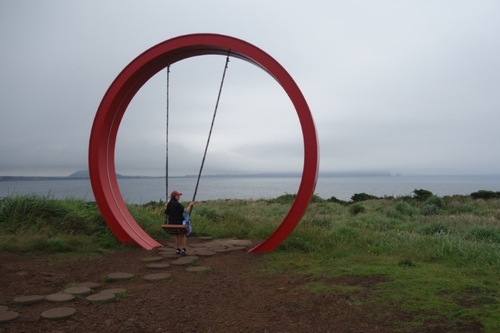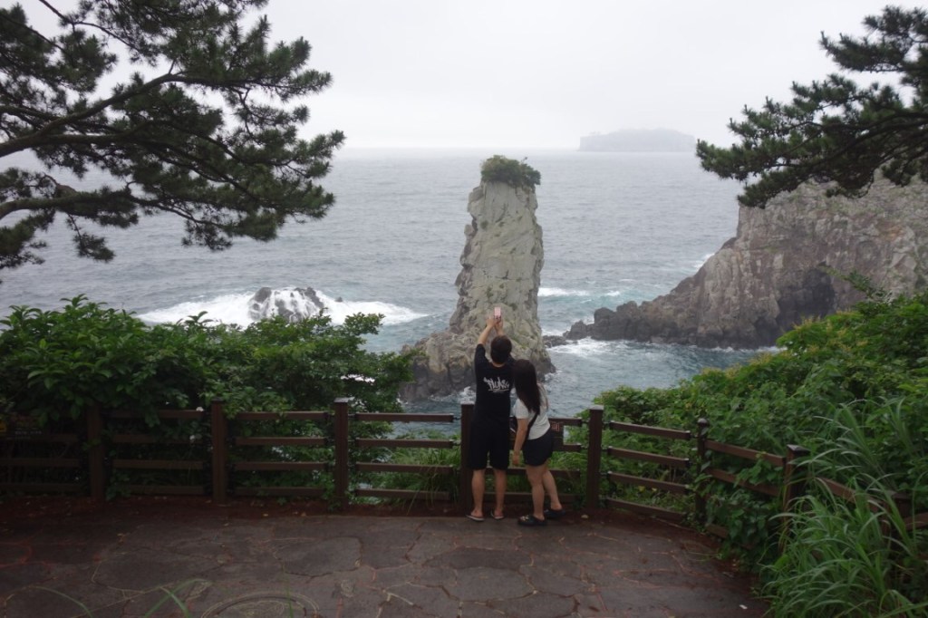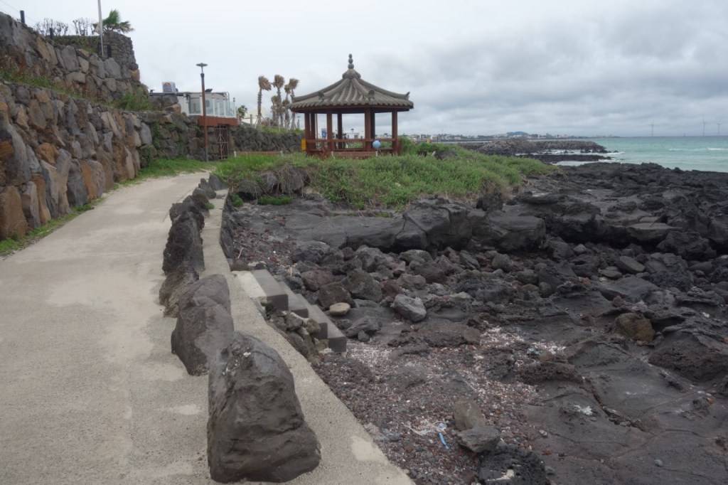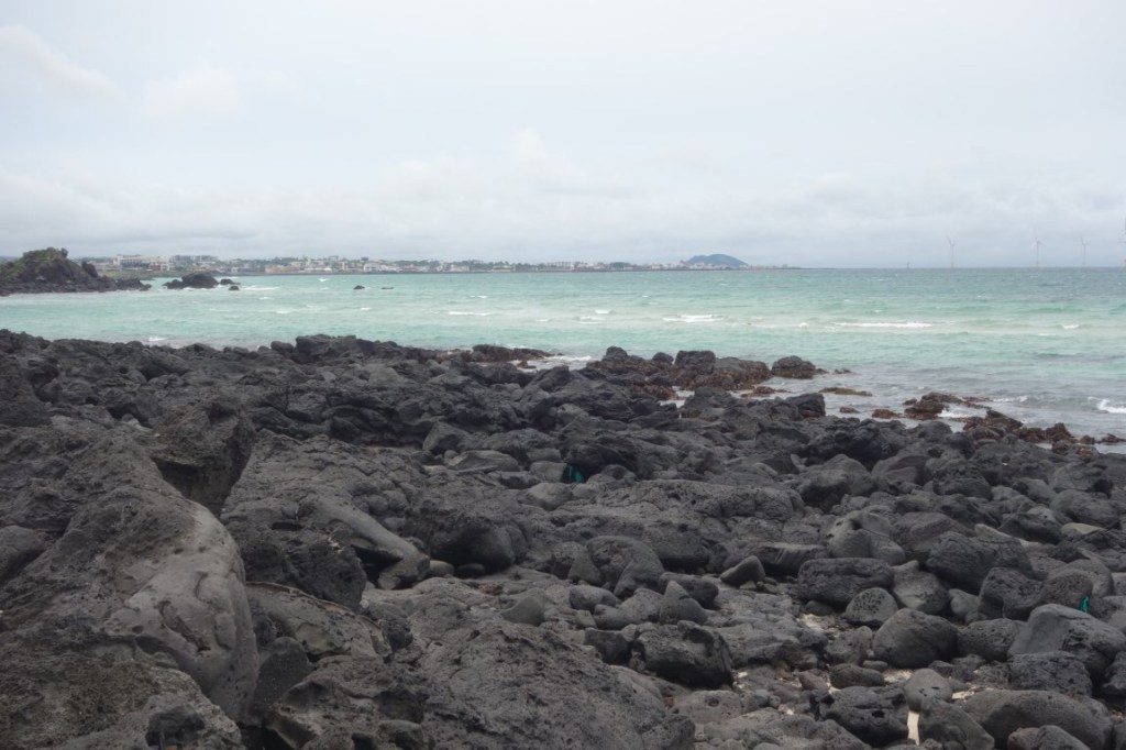 Uma das grandes atracções da ilha, para quem gosta de caminhar, é o Olle Trail, uma rede de 27 rotas que ao longo de 437 kms seguem maioritariamente junto à costa, ligando povoações por caminhos que ainda hoje são usados pelos locais. Não percorremos nenhum deles, mas, como não podia deixar de ser, espreitámos a costa de Jeju em muitos dos seus pontos. Diga-se, desde já, que na Coreia, e na Ásia em geral, não se faz praia como no ocidente – aqui, as pessoas vão à praia para passear, brincar, molhar os pés, e não estender a toalha na areia ou mergulhar em fato de banho. E, bom, cortesia do clima, desta vez fizemos como os locais, aproveitando ainda para apreciar o recorte da costa.