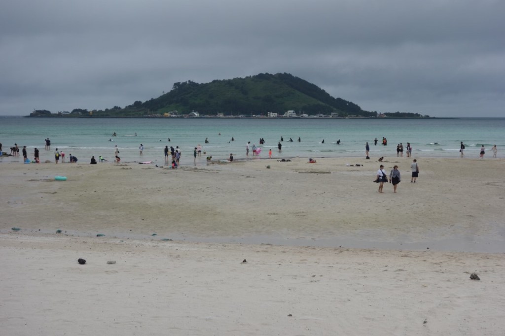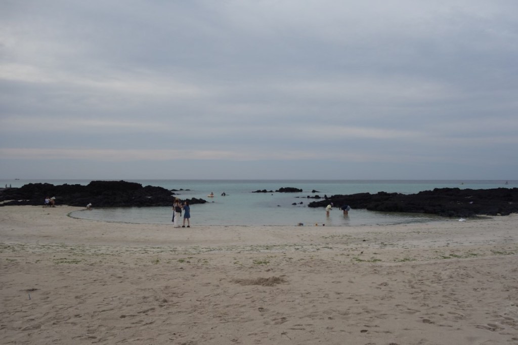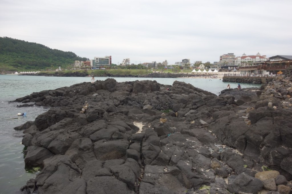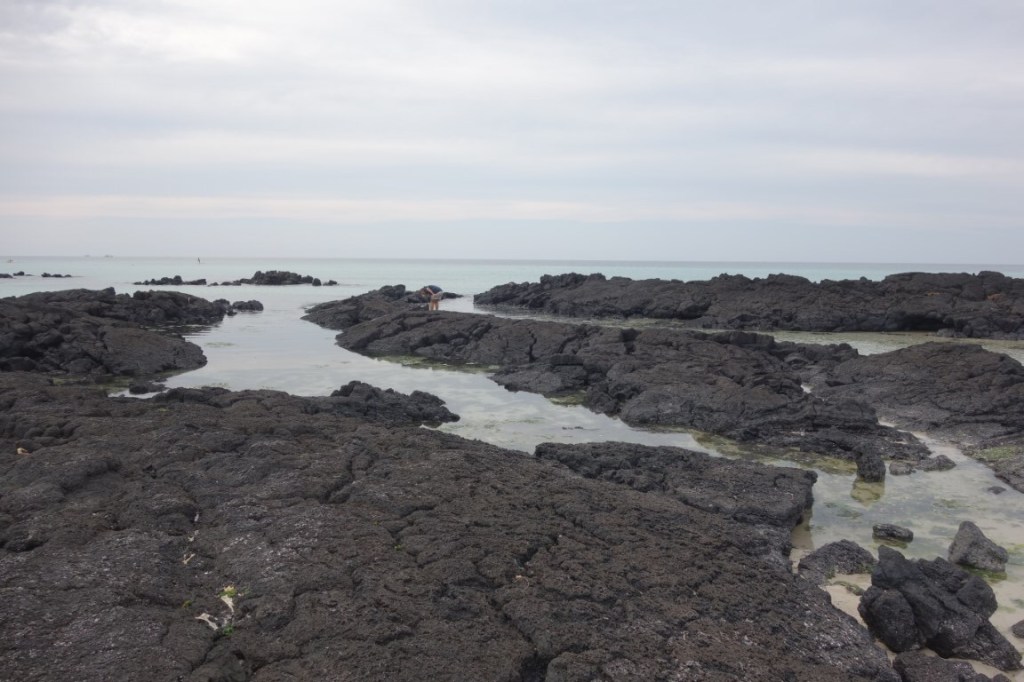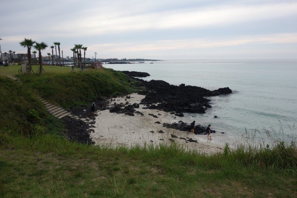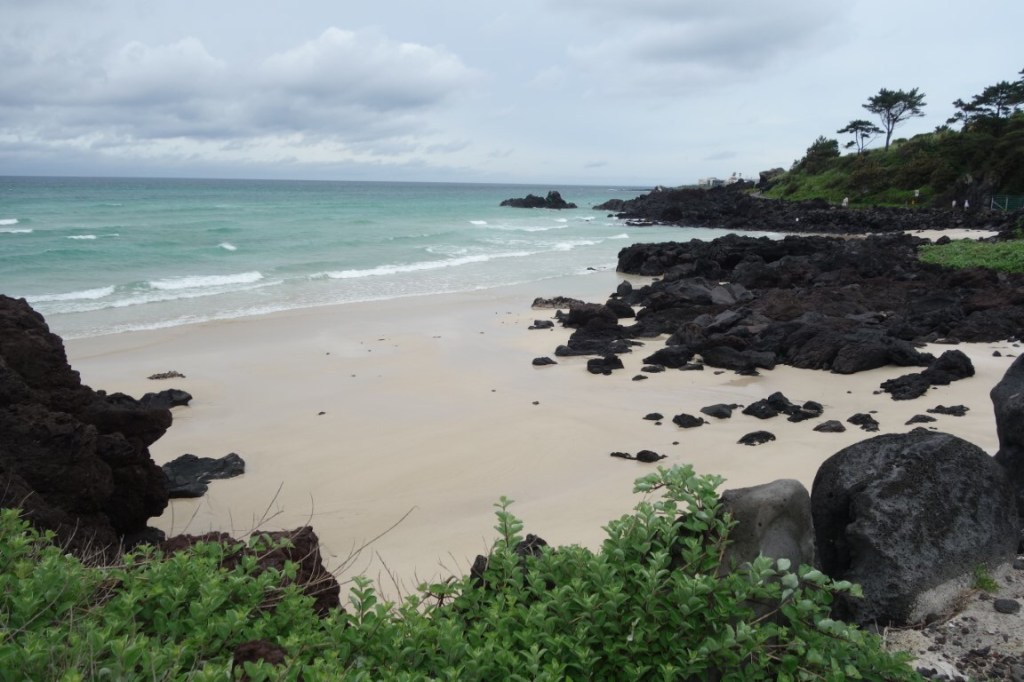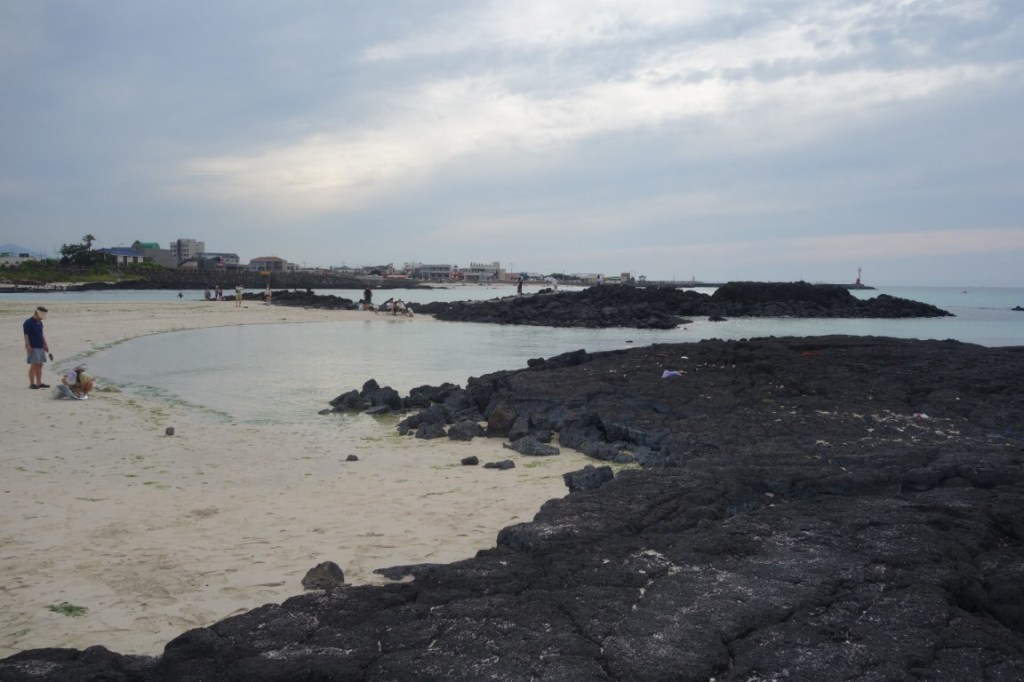 Na costa noroeste de Jeju, a pequena faixa formada pelas praias Hyeopjae e Geumneung é uma das mais bonitas. Diante delas está a ilha de Biyangdo, a compor ainda mais o cenário. De areia branca, a água é cristalina e de cor esmeralda, e na maré baixa a rocha negra vulcânica fica à vista e podemos observar os “rasgões” nela solidificados, criando marcas curiosas. A lava é, aliás, uma constante na ilha, sendo os Túneis de Lava de Manjanggul uma das grandes atracções de Jeju, infelizmente encerrados aquando da nossa visita.