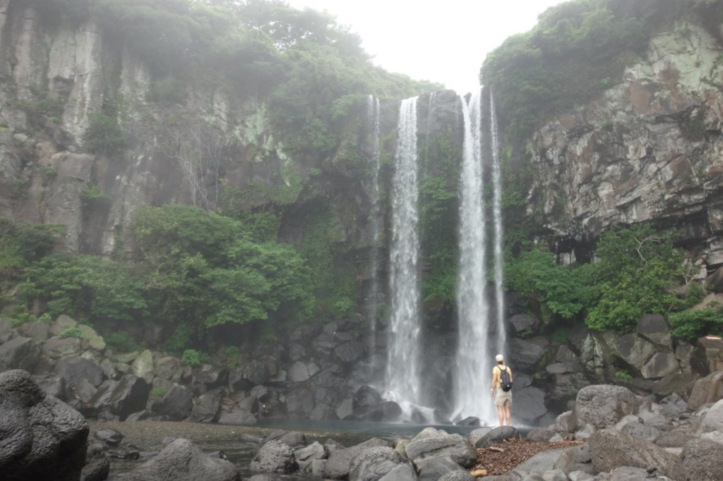 Por fim, a Cascata Jeongbang, a única cascata na Ásia que cai directamente no mar. Com 23 metros de altura, o seu nome vem do facto de parecer seda branca pendurada do céu.