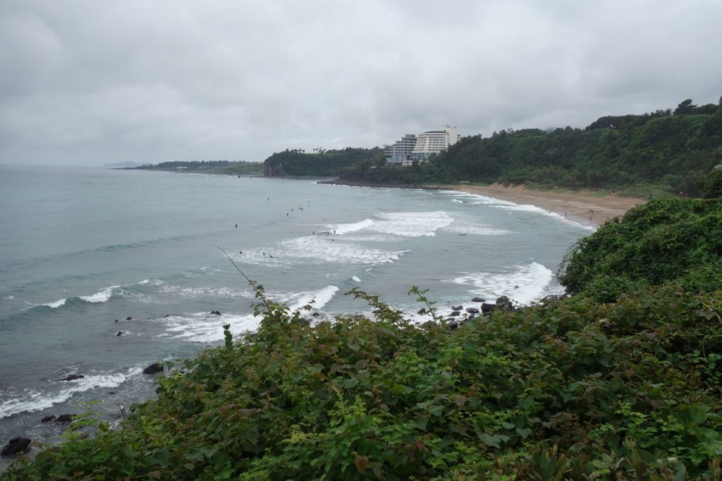 Mas talvez a praia mais famosa de Jeju seja Jungmun. Num ambiente tipicamente tropical, com densa e luxuriante vegetação à beira mar, tem uma longa faixa de areia. No mar, os surfistas usufruem das ondas num belo cenário.