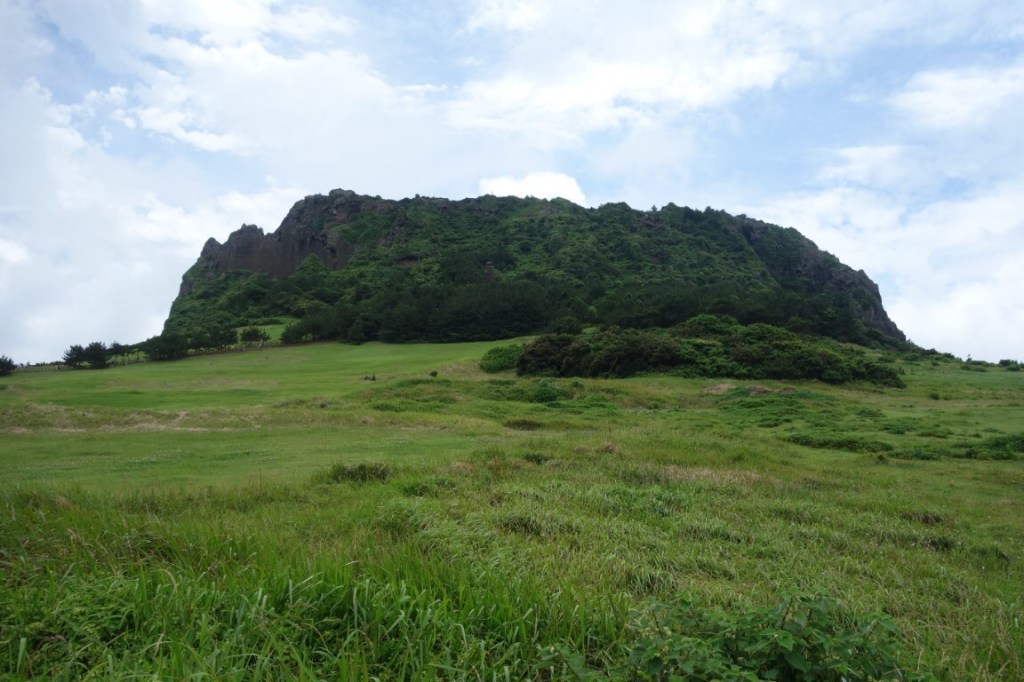 Na costa leste da ilha de Jeju, o vulcão Seongsan Ilchulbong anda adormecido, mas continua a desempenhar um papel espiritual para os ilhéus. Carregado de misticismo, diz que as suas rochas feitas de cinza das muitas erupções têm as qualidades dos guardiões que protegem contra os demónios – os Dolhareubang, as esculturas de pedra (literalmente, avôs de pedra) que vamos vendo um pouco por toda a ilha, um símbolo de Jeju, a par das tangerinas e das haenyeo. O Seongsan Ilchulbong é um cone vulcânico (conhecidos localmente por oreums) de tufo a 182 metros acima do mar, originado há cerca de 5000 anos depois de um fluxo de magma sob o mar. Este fenómeno fez com que o cone erigisse isolado no mar, embora esteja hoje ligado à ilha por um istmo entretanto formado pelos sedimentos e areias acumuladas, e no topo tivesse sido formada uma cratera pelo contacto da lava quente com as águas frias do mar. Seongsan significa “castelo na montanha” e Ilchulbong “pico do nascer do sol”, alusões certeiras à sua forma e às panorâmicas que o seu topo proporciona.