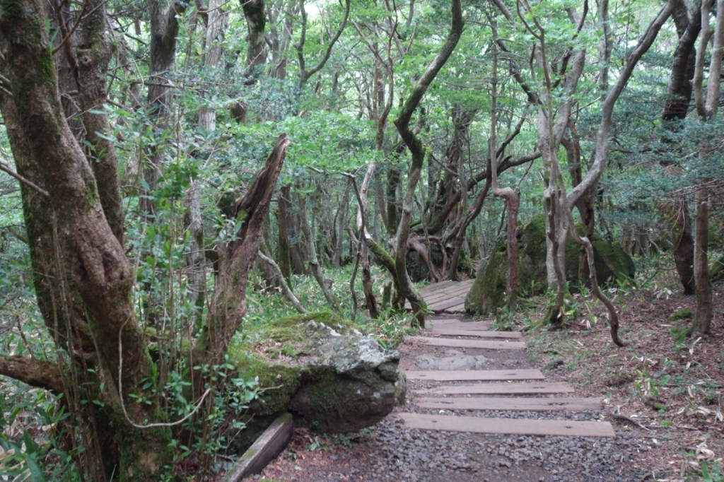 Há vários trilhos no Parque, mas apenas dois levam ao topo do vulcão, cuja cratera está ocupada por um lago. Não os percorremos, limitando-nos a subir ao oreum nas costas do centro de visitantes do Parque, o Eoseungsaeng-ak. São apenas 1000 metros para cada lado e a subida pelo trilho é fácil, permitindo-nos ficar completamente envolvidos pelo floresta típica da ilha. Mais, estava uma ventania e nevoeiro danados, mas a floresta não se deixou penetrar por eles, pelo que tivemos uma agradável caminhada. Para além de uma risota pegada pela aventura de tentarmos manter-nos de pé no topo da cratera, agarrando-nos bem aonde pudemos, não fosse o vento levar-nos a voar até uma outra cratera. Não tivemos, porém, direito a qualquer vista, tal era o nevoeiro.