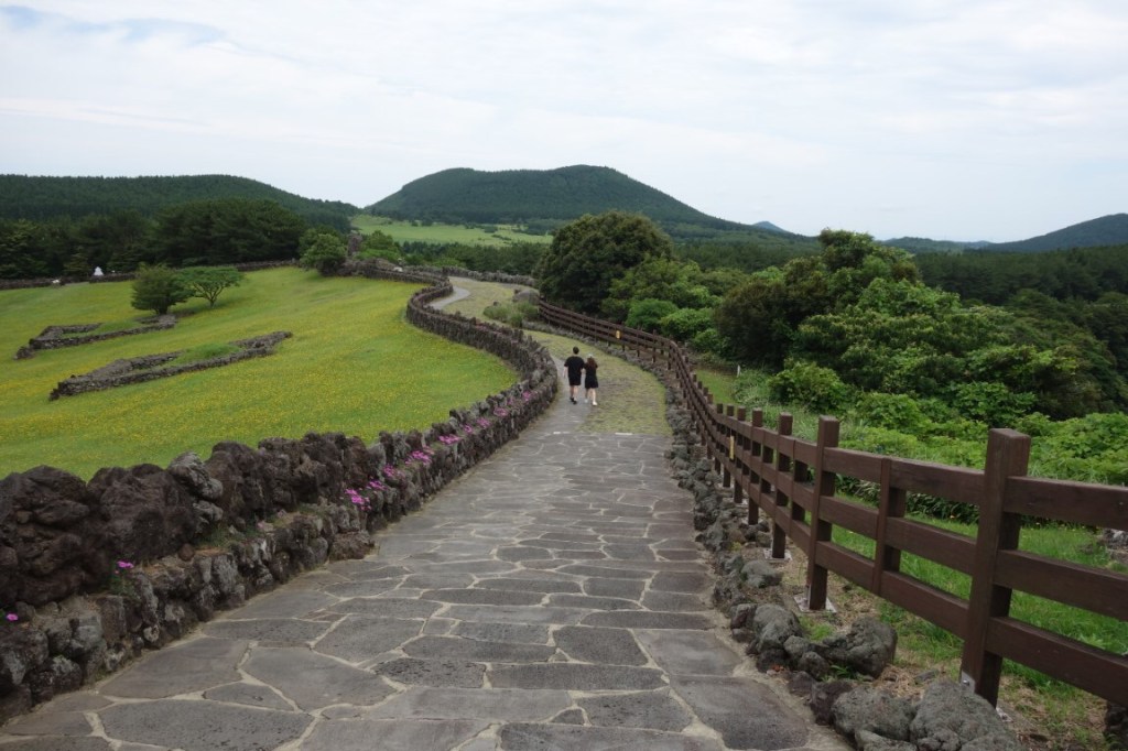 Já se disse, o mau tempo foi uma constante, mas não impediu que seguíssemos a passear. A montanha Hallasan tem 1947 metros, o ponto mais alto de toda a Coreia do Sul, mas não da península coreana – esse título pertence a Baekdusan, com 2744 metros. A identidade histórica coreana vai de Baekdu a Halla e diz-se que a energia do monte no norte (Baekdu) da península é a mesma do monte a sul (Halla), que marca o fim da Coreia, possuindo ambos elementos semelhantes. Hallasan ocupa uma grande parte do centro da ilha, considerada Parque Nacional, e são dezenas os oreums ao seu redor.